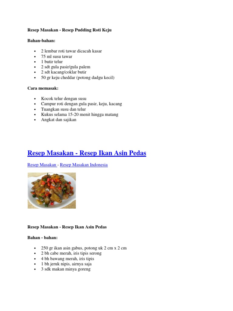 2694 resep masakan rumahan yang mudah dan enak. Nah mari kita coba 4 resep masakan menggunakan ikan asin. Dengan bumbu yang sangat sederhana tetapi resep tumis ikan asin peda nikmat dan lezat memiliki cita rasa lezat yang nikmat dan tentu saja menggugah selera.