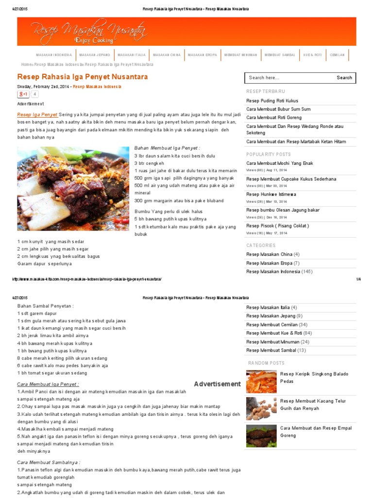 Resep Rahasia Iga Penyet Nusantara Resep Masakan Nusantara Pdf