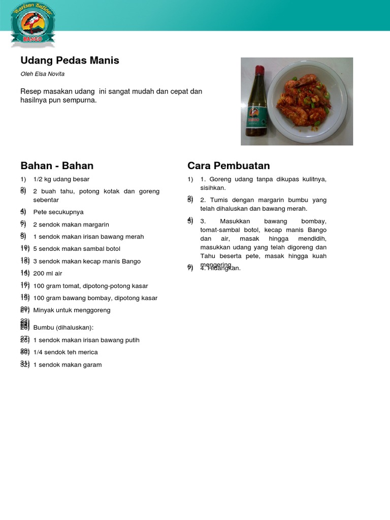 Resep Udang Manis Pedas Masak Apa Hari Ini
