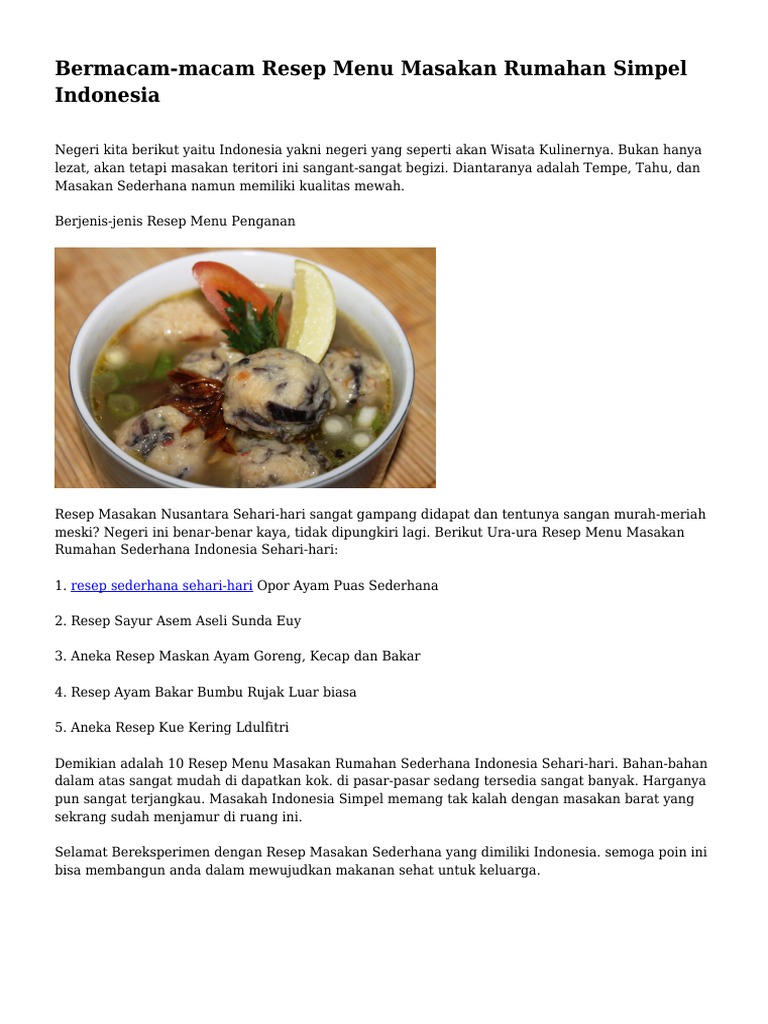 Resep masakan indonesia sehari hari sederhana pdf. Resep masakan indonesia aneka rasa doc. Temukan berbagai resep sehari hari favorit rumahan anda. Masakan nusantara pdf hnseven.