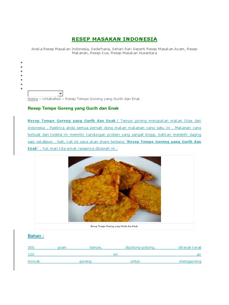 Resep Masakan Telor Tahu Tempe Pdf Document