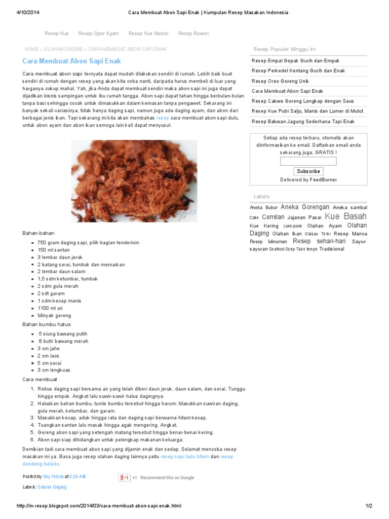 Cara Membuat Abon Sapi Enak Kumpulan Resep Masakan